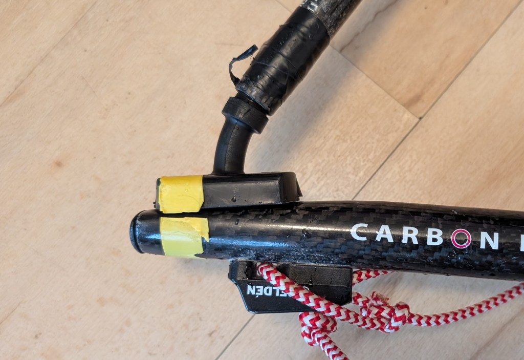 The halyward tail broke again recently, and since it was starting to slip anyway, I tried Sammy Isaacs-Johnson’s suggestion to use the Rooster RS Aero Haylard upgrade. This works a treat, it holds tight, is easy to pull through the mast top bullseye and I was able to reuse the halyard tail.
